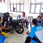 Dokumentasi kegiatan Pelatihan Servis Sepeda Motor untuk Siswa/i SMKS TI Muhammadiyah 11 Sibuluan Jurusan Teknik Sepeda Motor (TSM) oleh instruktur dari Yamaha Alfa Scorpii – Medan.