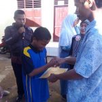 Dokumentasi foto kegiatan pemberian piagam penghargaan dan hadiah bagi para siswa/siswi peraih peringkat 1, 2, dan 3 masing-masing kelas pada waktu penerimaan rapor semester ganjil tahun pelajaran 2016/2017, Rabu 21 Desember 2016 di SMKS TI Muhammadiyah 11 Sibuluan Kabupaten Tapanuli Tengah.
